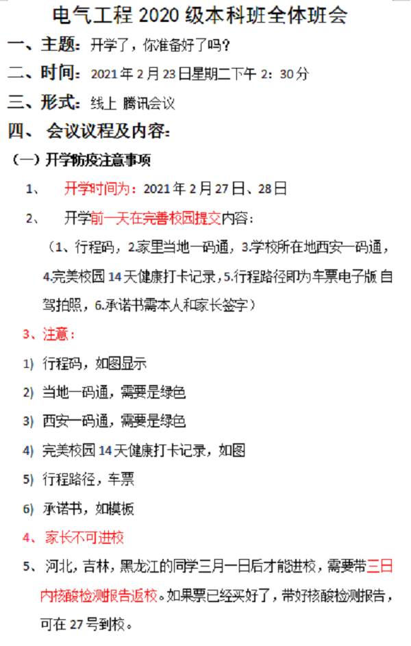 正值农历正月十二,年味尚浓,同时也伴随着同学们即将启程准备的开学氛围。电气工程学院2020级辅导员马蜜老师经过前期精密的工作部署,于2月23日下午2时30分准时登录“腾讯会议”,召开了电气工程2020级本科159名学生的有关《开学了,你准备好了吗?》的主题班会。