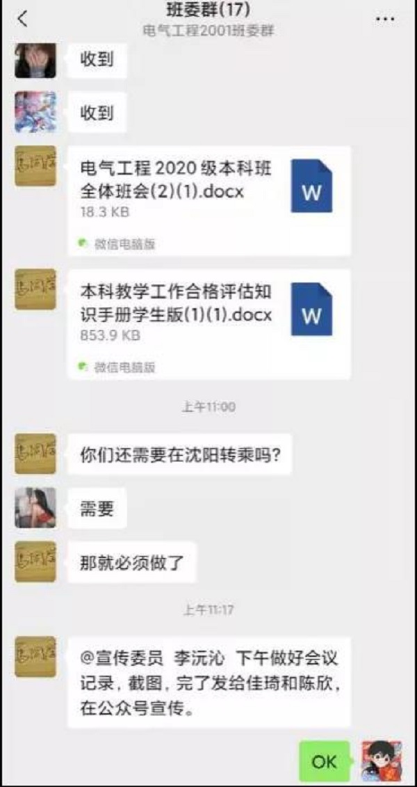 本次会议从三个方面向同学强调了开学返校的注意事项,要求同学们在开学前做好健康监测及时提交返校申请,返校途中减少换程并做好防护,返校后认真组织对宿舍卫生和教室卫生的消杀通风打扫。同时马老师向同学们传达了本学期是我校本科教学评估的迎评之年,希望各位同学从自身做起,为我校评估工作争光添彩。最后通过班委例会,要求各班班委能够以身作则,做好开学前的准备工作,并在本学期能够继续带领班级营造良好的班风学风。