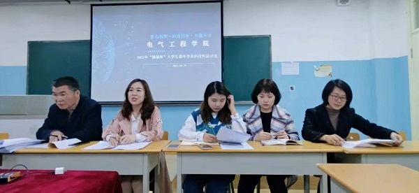 为深入贯彻党的十九届五中全会精神,推动我院学生课外科技创新活动的深入发展,培养学生科技创新意识和科技创新能力,提高学生综合素质,引导我校学生努力培养科学精神和科学态度,积极学习科学知识和科学方法。2021年3月22日,电气工程学院于7-409教室开展“挑战杯”参赛作品评审会。参与此次评审会议的领导和老师有我院院长李银兴,校团委副书记王小英、我院党总支书记王拓辉、教学副院长任小文、副院长冯征,校团委左晨曦、韩卓媛,学生党支部书记王新焕、教研室教师谢国坤、贾亚娟、以及我院全体辅导员老师。评审会由马蜜老师主持。
