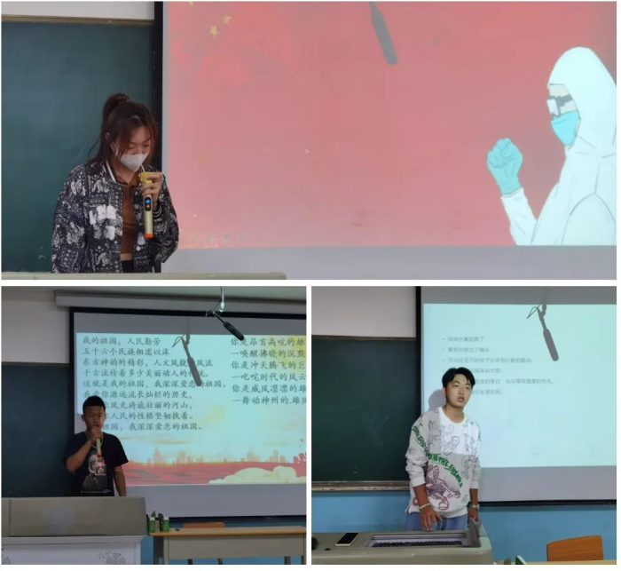 比赛过程中,选手们用铿锵有力的气势,充沛饱满的感情,自信大方的形象赢得评委们和同学们的阵阵掌声。所创作的诗歌有的畅谈自身经历;有的回忆校园印象;有的歌颂抗疫英雄;有的表达爱国情怀。选手们将内心最深处的声音展现出来,引导同学们追求青春,追求理想。