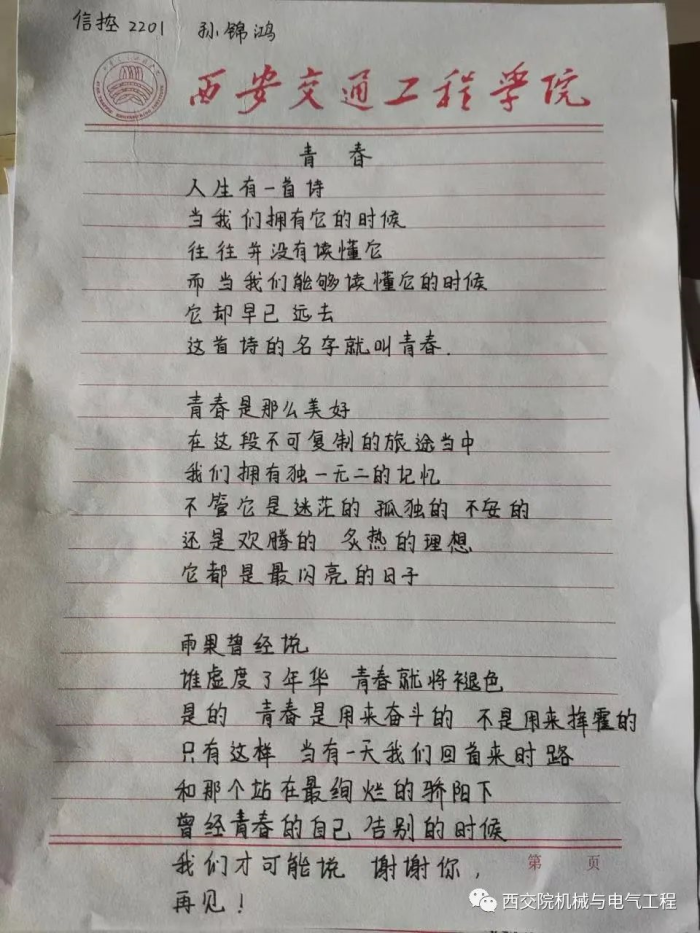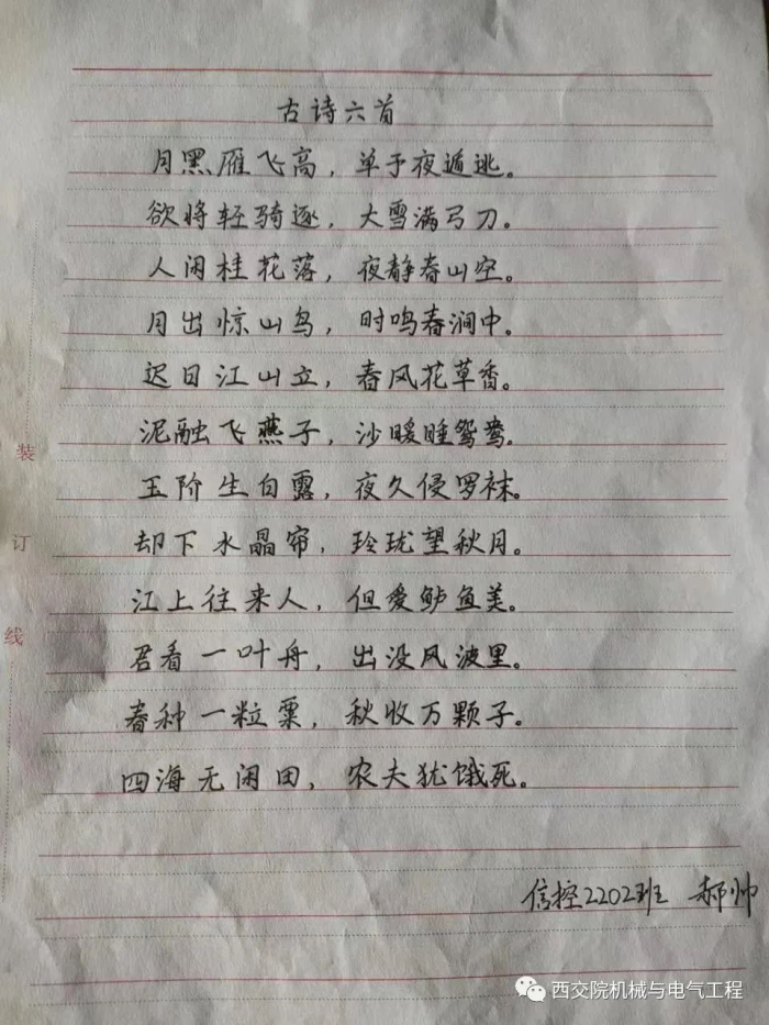 为传承和发扬中国书法的历史文化,丰富疫情期间校园文化活动,规范汉字书写,陶冶大学生的文化修养和心灵内涵,我院暖伴学涯学长导师团队特此举办“秋日薄暮”书法比赛,全院学生积极参加此次比赛。
