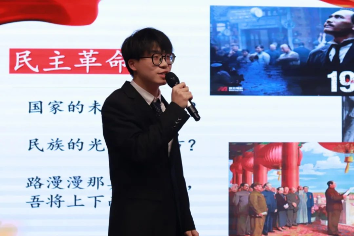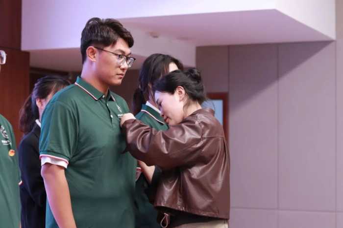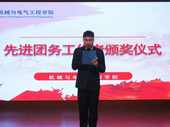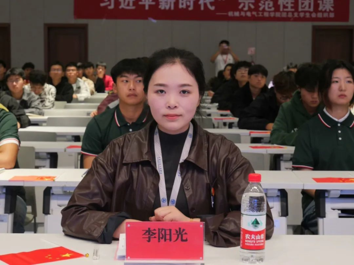 活动开始,参会人员全体起立奏唱团歌,随后由李阳光为团员青年代表佩戴团徽,机械制造2101班团支书、预备党员崔尉浩开展主题团课,从回答时代之问、紧握时代之匙、青年有为、历久弥新继往开来四个方面讲解,举例雷锋精神、钉子精神、黄继光、邱少云、新时代青年榜样徐梦桃、孙金龙、姜丽娟等,激励广大团员青年向先烈学习、向榜样学习,始终在思想上、政治上、行动上同以习近平同志为核心的党中央保持高度一致,做到学用结合、知行合一,把保持与党的历史使命同心同向作为正确政治选择,作为立身之本、成才之基,坚持爱党和爱国、爱社会主义高度统一,做走在时代前列的奋进者、开拓者、奉献者,同全国各族人民一道,在实现中华民族伟大复兴中国梦的实践中,放飞青春梦想,追求人生价值,最后,由李阳光和团总支副书记常宇楠为23级优秀团务工作者颁奖。