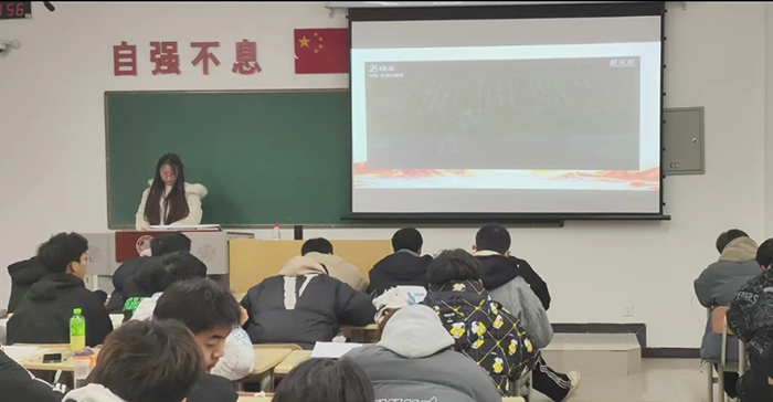 其次,由庞莎莎同志带领青年和团员们观看了一则短篇。旨在激发青年的爱国思想和激发起爱国青年的热情,在影片结束后,她对本次观影进行了分析并且深有感悟,对习近平新时代中国特色社会主义思想以及本次爱国主义团课进行了细致性的发言,通过思想先进的青年。进行的思想带领,也意味着会有更多的青年在思想上得到进。