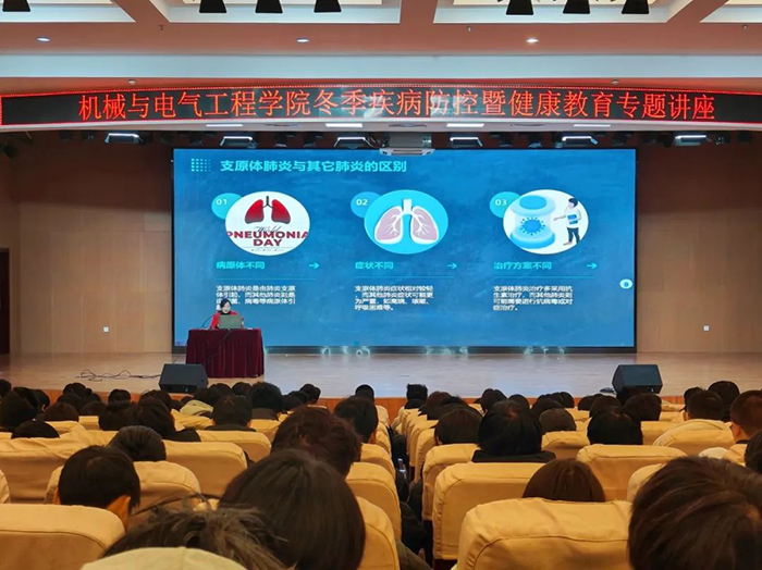 本次讲座的顺利开展,使同学们对流感、出血热、支原体肺炎的起源、传染源、传播途径以及易感人群、患者如何就诊等相关知识有了更深入的了解,对营造健康和谐的校园环境,更加有效地预防各类传染疾病起到了积极作用,有力地促进我院预防冬季传染病工作的成功开展,为创建平安、和谐校园提供了进一步保障。
