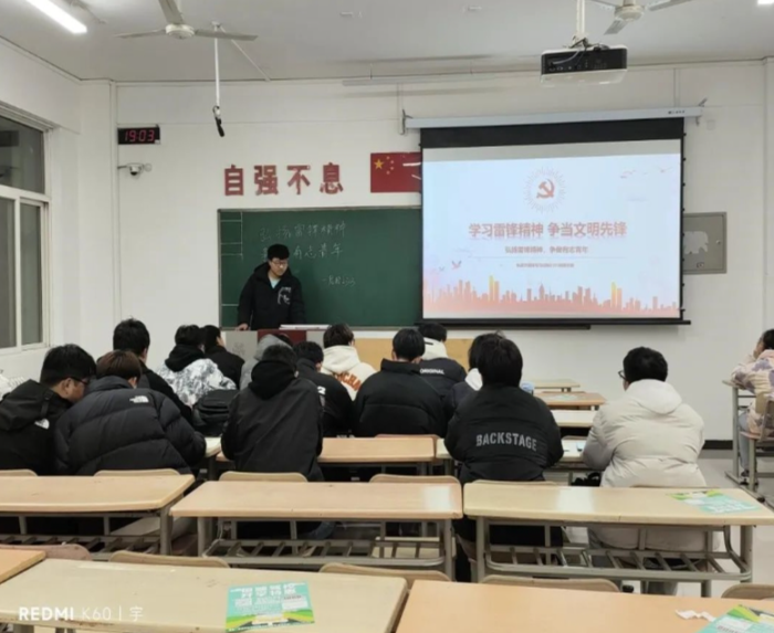 3月5日,我院轨道交通信号与控制2303班开展“弘扬雷锋精神 争做有志青年”主题团课,本次团课由信控2303班团支书黄河主讲,他通过PPT为同学们讲解雷锋同志生平事迹、雷锋纪念日的来历、我们身边的“雷锋”等先进事迹、新时代青年要如何接力“雷锋精神”等模块,从不同角度对新时代雷锋精神进行阐述,带领同学们感受雷锋的精神力量,结合实际分享如何将雷锋精神落实到具体行动中,将其内化于心,外化于形。
