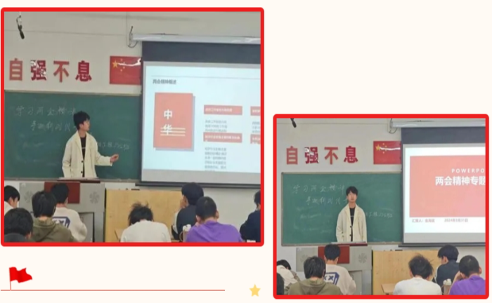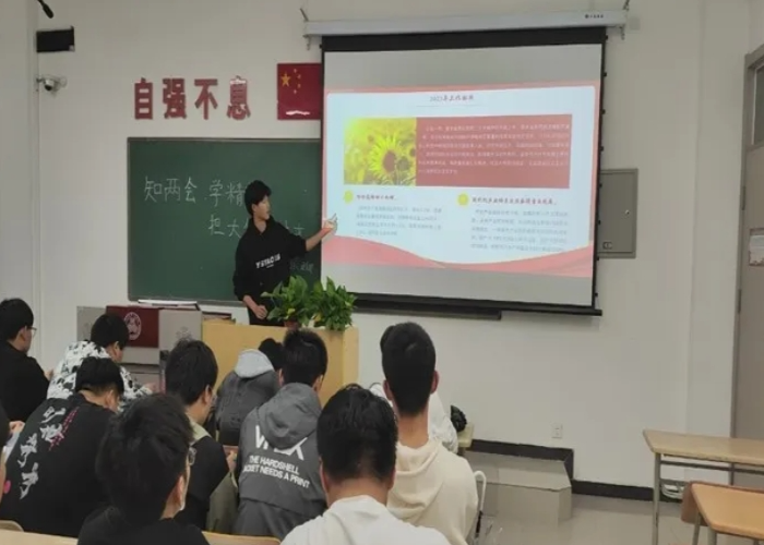 为深入学习贯彻全国两会精神和习近平总书记系列重要讲话精神,4月2日,机器人工程2301团支部开展“学习两会”主题团课,促使学生深刻理解两会精神,明确国家发展方向以及未来努力的目标,激励广大学生为祖国的发展做出实质性的贡献,为祖国建设添砖加瓦。