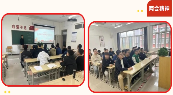 通过深入学习两会精神,激励该院学生认真学习专业知识,在学业上追求卓越,为社会贡献力量、积极作为,用实际行动助力国家的发展与进步,坚定理想信念,牢固树立正确的人生观、价值观和世界观,培养良好的品德和高尚的情操,坚定不移走中国特色社会主义道路,积极投身于社会主义伟大建设,为构建和谐稳定社会发展做出更大贡献。