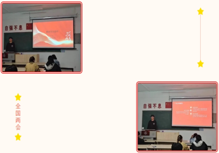 为深入学习贯彻2024年全国“两会”精神,该院信控2302团支部开展践行党的“二十大精神,聚焦两会重点”的团课,旨在深入学习习近平总书记在全国两会期间的重要讲话精神和全国两会精神,进一步明确当代青年的责任与担当。