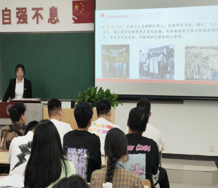 活动中,团支书庞莎莎向团员们详细介绍五四运动的历史背景、过程和深远影响,她表示五四运动是中国近代史上的一次伟大爱国运动,是中国青年追求真理、勇于探索、敢于斗争的精神象征,五四精神的核心内涵是爱国、进步、民主、科学,这些精神在新时代仍具有重要的现实意义,鼓励同学们牢记作为新时代青年的责任和使命,积极投身到国家建设和社会发展中去,为实现中华民族伟大复兴的中国梦贡献自己的青春力量。