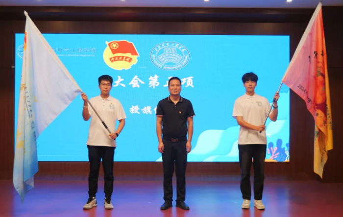 随后,院领导及带队老师将一面面鲜艳的队旗交到各队代表手中,象征着学院对同学们的信任与期望。接过队旗的那一刻,意味着他们肩负起了新的使命和任。他们将带着这份荣誉与责任,踏上新的征程,用实际行动书写青春华章。