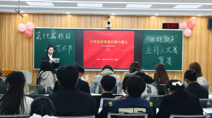 在第十七届校园文化艺术节的浓厚氛围中,“你好·新声”金话筒主持人大赛校赛顺利进入复赛阶段。我院学生阴万锴、梁胤博、管婉怡成功晋级复赛,在舞台上自信展现风采,彰显了理工科学生在语言艺术领域的独特魅力。