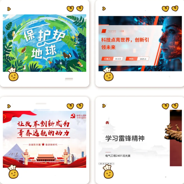 比赛吸引了众多学生积极参与,参赛者们纷纷报名,踊跃提交作品,展现了对PPT创新设计的浓厚兴趣与无限创意。本次比赛共收到大量富有创意的作品,内容涵盖科技前沿、文化传承、环保理念、教育创新等多个领域,每一个提案都凝聚了参赛者的独特思维和匠心独运的设计理念。