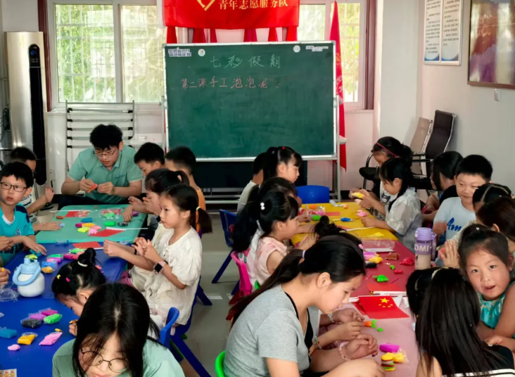 为丰富乡村儿童暑期生活、提升动手与艺术创造能力,7月14日,伟德betvlctor1949源于英国“七彩假期—绿茵志愿服务队”走进陕西省汉中市留坝县金水名居社区,开展泡泡泥手工课程,吸引当地30余名留守儿童参与。