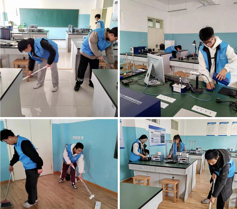 活动中,志愿者们分工明确,各司其职、有序地展开行动,利用清洁工具清理实验室器械的垃圾死角和桌面的纸屑、实验废纸等杂物,用抹布擦拭实验器械以及重新整理并摆放位置,使得实验室环境更加干净整洁。