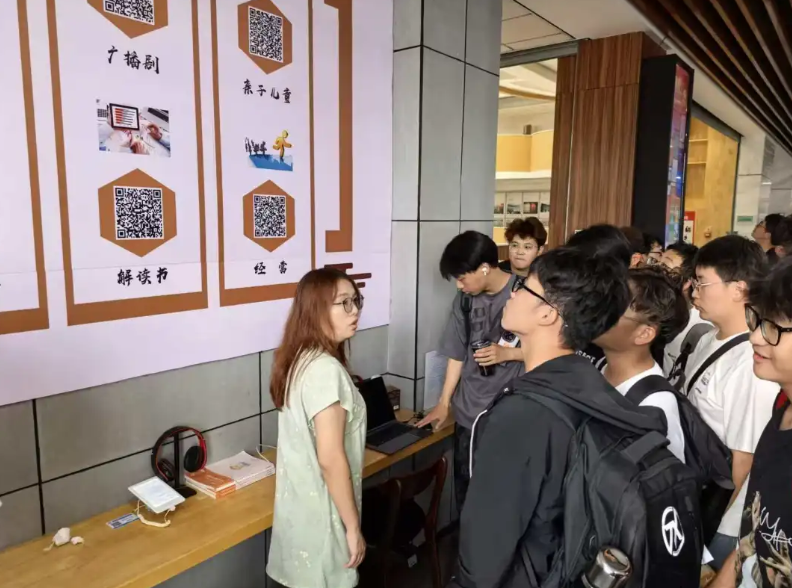 在数字资源展示区,工作人员带领新生直观了解了图书馆订购的中外文数据库、专业期刊等核心数字资源,并详细讲解了通过校园网和校外访问系统获取资源的具体途径,鼓励大家利用碎片化时间进行学习,不断拓展专业视野与知识边界。讲解过程中,新生们认真记录要点,并就资源获取、空间预约等实际问题踊跃提问,工作人员均给予耐心解答。