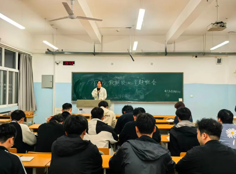 在“国庆收心”环节,学院以班级为单位召开主题班会。辅导员们结合假期学生实际情况,梳理新学期学习重点,提醒同学们及时调整作息,摒弃“拖延症”“嗜睡症”,通过制定阶段性学习计划、预习课程内容等方式,迅速完成角色转变,尽快进入学习状态。