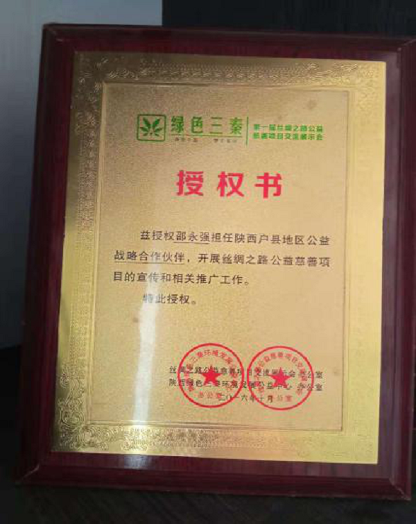 2016年邵永强被绿色三秦聘任为陕西户县地区公益战略合作伙伴,开展丝绸之路公益慈善项目的宣传和相关推广工作。